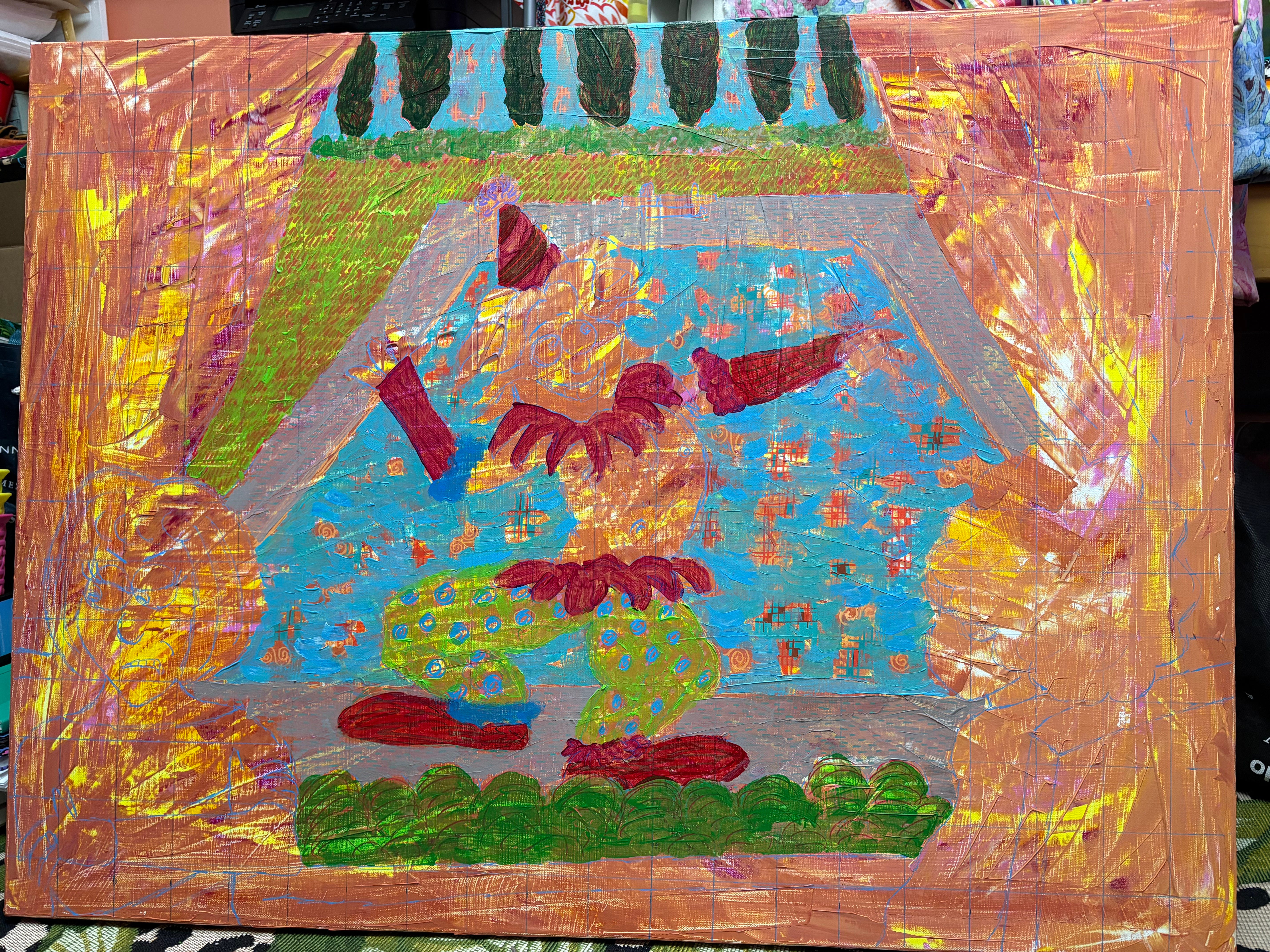 As opposed to, say, saying “I’ll paint all day Sunday” I’d prefer to start painting an hour a day for building the habit and staying on track if something comes up on Sunday. Currently, I paint in big blocks, and I like it, but also it’s susceptible to disruption.