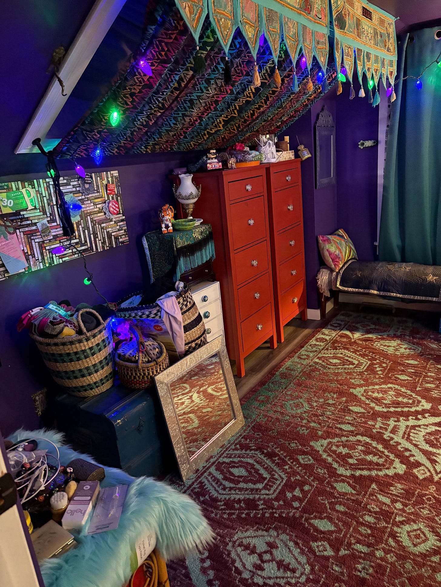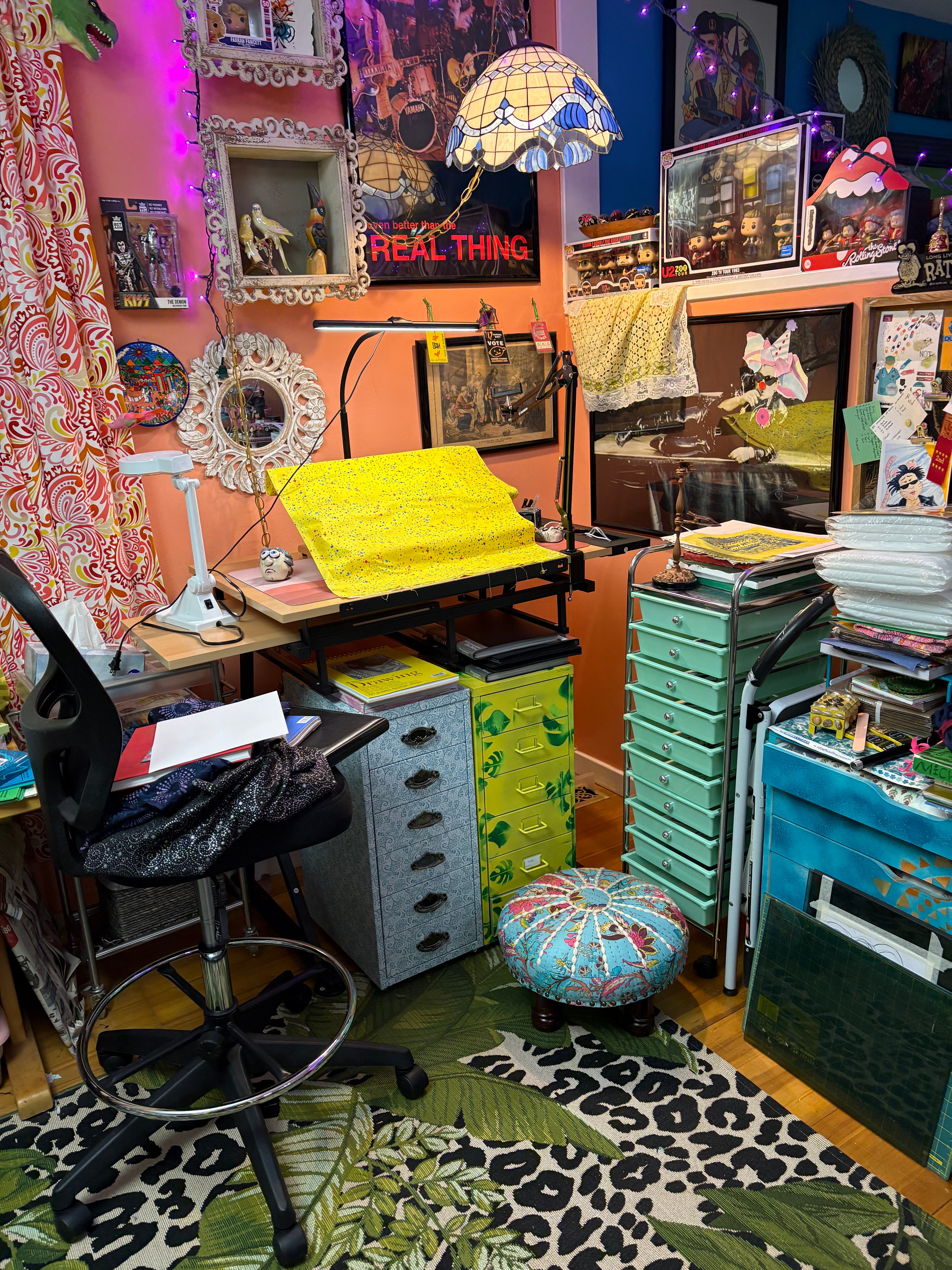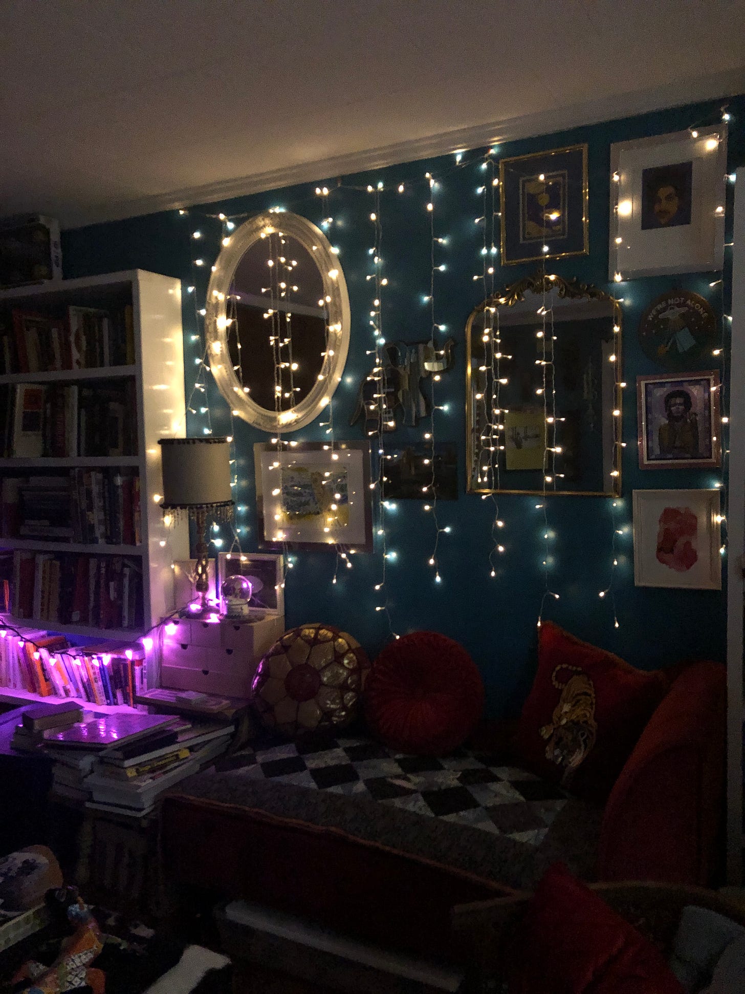 Anyway, hairballs aside, I got things organized and the vibe was vastly better but still missing something. I knew from downstairs in the studio and long ago in maQLu Central: mood lighting.